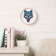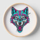 Cyberpunk Neon Wolf - Synthwave Robotic Animal Clock