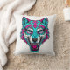 Cyberpunk Neon Wolf - Synthwave Robotic Animal Cushion