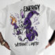 Unleash your inner rebel with this "Energy Without Limits" graphic T-shirt. Featuring a bold, split-design cyberpunk rabbit holding a flaming bottle, this illustration perfectly blends urban graffiti vibes with a dark anime aesthetic. Whether you're into streetwear, Harajuku style, or edgy digital art, this high-quality design is made to stand out. Perfect for fans of bold typography and unique character art. Ignite your style and break the boundaries