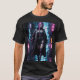 A beautiful girl walks through the streets of the city in cyberpunk style