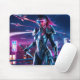 Cyberpunk Warrior Mouse Pad Neon Cityscape Design
