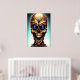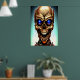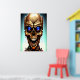 Golden coloured cyborg skull with deep blue eyes. This is a AI generated art.