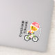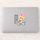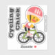 Show you love for cycling with these cute kiss cut vinyl cycling chick vinyl stickers. A cute yellow chick wears a pink helmet, black and white biker shorts, hot pink top and tennis shoes. Three individual stickers: the chick and the words, cycling and chick. Artwork © Chrissy H. Studios, LLC. All rights reserved.