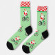 Creative cycling Christmas holiday socks featuring funny Santa cyclist riding a bike downhill.