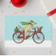 Cute cartoon dog wearing a green striped winter hat and long scarf and pedaling a red bicycle. Cheerful red squirrel is riding in the bike basket. These two are on their way to deliver Christmas presents to friends. Inside text: “Peace on Earth.” The text can be personalised with your own special message. This whimsical animal art holiday greeting card is perfect for personal or business mailings. Visit Jenn's Doodle World for more fun animal design cards and gifts.