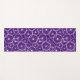 Purple yoga mat with a bicycle wheel pattern. White bike wheels patterned over a funky purple. Perfect for cyclists.