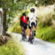 Two road racing cyclists enjoying the country lanes of Wales. Watercolor.