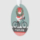 Creative cycling Christmas ornament holiday gift with cartoon Santa bike riding. Edit text to easily customise by adding name of your favourite cyclist.