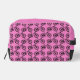 Cyclists will love this vibrant pink Dopp Kit bag, patterned with black mountain bikes and a circle to add your own initial.
