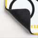 Cyclist riding his bicycle custom mouse pad displaying a minimalist icon of a black cycling silhouette wearing yellow top and your text on white background with yellow border. This cool design is a template and it is completely customisable.