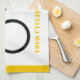 Cyclist riding his bicycle kitchen towel that showcses a minimalist icon of a black cycling silhouette wearing yellow top and your text on white background with yellow border. This cool design is a template and it is completely customisable. Personalise it and change text with monogram, name or your message.