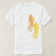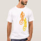 Our cycling themed t shirt features an illustration of two cyclists. The silhouettes are in orange and yellow. We placed the design off centre but you can easily change this to suit by using the customise button. You can also add your own text.