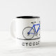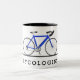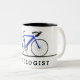 Cycologist text with blue bicycle Two-Tone coffee mug