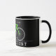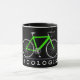 Cycologist text with neon green bicycle mug