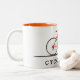 Cycologist text with orange bicycle Two-Tone coffee mug