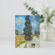 A fine art postcard with Cypress Against a Starry Sky (1890), by Vincent Van Gogh (1853-1890). A Dutch Post-Impressionist painter. A couple walking on a path with a cypress tree and wheat fields in the background against a blue sky.