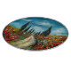 CYPRESS TREES AND POPPIES IN TUSCANY ROUND CUTTING BOARD