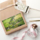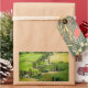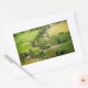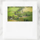 Rectangular photo sticker with a zigzag winding, cypress tree lined road through the green fields in Monticchiello, Tuscany in Italy.