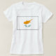 The front of this t-shirt boldly displays the Cypriot flag with its distinctive orange map and two green olive branches on a white background. This is matched at the back by an attractive map of Cyprus.