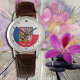 I like the illustrative watch with the lady on it. It is a great reminder that I am blessed and it has a very sturdy leather band. The colors are true and vibrant. Love the color of the Leather also. Very nice.
