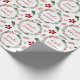 Green and red Christmas holiday wreath design gift wrap, with the words Merry Christmas in Czech: Veselé vánoce
