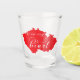 The shot glass features the country map with a scripted font and heart design.