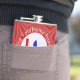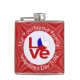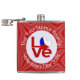 Hip flask with the word LOVE in red letters with a heart shaped flag of the Czech Republic for the O. The word LOVE is featured in red letters inside a white, fractal circle of squiggly squares. The circle sits on a red, fractal background, also, of squiggly squares. Perfect for Valentine's Day or any special time.