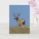 Mule Deer Buck in Velvet Card. Mule deer buck in velvet covered antlers crests a hill under a beautiful clear blue sky in a warm spring.