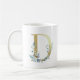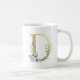 D gold initial with blue floral foliage coffee mug