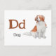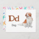 "Letter D is for Dog" in our Alphabet Flash Card set. Get all 26 letters of the alphabet! A double-sided postcard that is great for memory games and teaching, geared for education, schools, teachers and homeschoolers for kindergarten and babies. All text is editable if you need to customise.