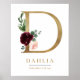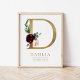 D Letter Monogram Name Marsala Floral Nursery Poster
