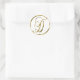 D Monogram Faux Gold Envelope Or Favour Seal. These classic round stickers are printed with non metallic ink on a flat sticker to look like gold. They are not beveled or embossed monograms but are designed to look like they are beveled or embossed monograms. These gold monogram seals are printed on a white background unless you select a different colour background before you proceed to checkout. In addition to being pretty wedding stationery supplies, these elegant wedding invitation envelope seals also make great monogrammed custom Christmas card seals, personalised holiday greeting card envelope seal stickers and customised Xmas card monogram seal stickers.