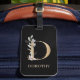 Letter D monogram floral. Letter D in golden brown texture accented with green watercolor compound leaves, flower blossoms and gold dust. Personalised with name in matching font.