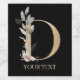 Letter D monogram floral. Letter D in golden brown texture accented with green watercolor compound leaves, flower blossoms and gold dust. Personalised with name in matching font.