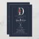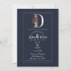 D Monogram Last Initial Modern Blue Floral Wedding Invitation