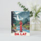 Escape to the 'City of Eternal Spring' with this gorgeous vintage travel poster style postcard for Da Lat, Vietnam. The design features a stunning highland landscape with a cascading waterfall and rolling mountains. A graceful woman in a traditional red Ao Dai and nón lá (conical hat) stands by a clear river, while local figures and a deer complete the peaceful scene. This card beautifully captures the cool climate and serene beauty of the region. Perfect for sending greetings, decorating with retro Southeast Asian art, or celebrating the Vietnamese highlands.
