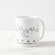 Daanyaal spelled out in amino acids as D A A N Y A A L (Aspartic acid Alanine Alanine Asparagine Tyrosine Alanine Alanine Leucine) on a mug for the scientist in you.
