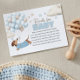 Books for baby enclosure card with adorable dachshund theme for a boy baby shower invitation. The book request card is Illustrated with a cute dachshund puppy wearing a blue sweater, floating amongst a bunch of soft blue and beige balloons. Playful clouds and stars add to the whimsical theme. Sure to bring smiles whilst evoking a gentle, joyful vibe.