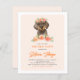 Invite guests to your event with this customisable birthday invitation. It features watercolor illustrations of a cute dachshund, and peach flowers. Personalise by adding your details. This cute dachshund invitation is perfect for birthdays, baby showers, and other events.