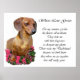 In my summer garden the flowers all in bloom, They bide me with their fragrance to dissipate my gloom. There waits my Dachshund, because we both know that where we are together love will surely grow. Exceedingly beautiful Dachshund art captures the look of devotion on this wonderful breed and companion.