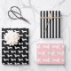 Birthday Dachshund dog silhouette patterns in pink and white with a bold black and white stripe accent sheet to compliment the Wrapping Paper Set.