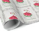 This adorable Dachshund Christmas Caroler gift wrapping paper features my portrait of our blue Dachshund Bernadette. She is wearing a red and green dress with hood . She's holding a song book and she looks up at two cardinals on a tree branch. Includes a black filagree border and green script text saying, "Seasons Greetings".