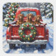 Dachshund Christmas Red Truck Holiday Square Sticker