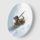 Purchased this online and it got delivered quickly. It was a present for my Dads 70th birthday. He loves clocks so decided to get him one with something written on it. Battery went in and it started working straight away. Dads had no issues with it. Printing was just how it came up online.