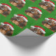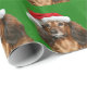 Red long haired dachshund wears a festive Santa hat in this dog lovers Christmas holiday wrapping paper