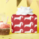 Dachshund with Christmas stocking silhouette over red or change background colour as preferred.