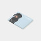 Personalised pop art dachshund post it notes featuring a cute black tan sausage dog on a pastel blue background that can be changed to any colour, and your name.