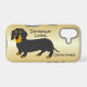 Mobile phone case dachshund dog design that you can customise with any text of your choice. Should you require any help with customising then please contact us through the link on this page. Dachshund design personalised iPhone 15 case