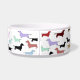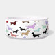 Cute bowl for your pet to eat or drink out of. It features lots of little dachshund dogs all over it in many colours. There is a space to customise your pet's name.