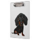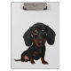 A sturdy clipboard ideal for providing a flat writing surface wherever you are. With a digital oil painting caricature of a Dachshund puppy dog.